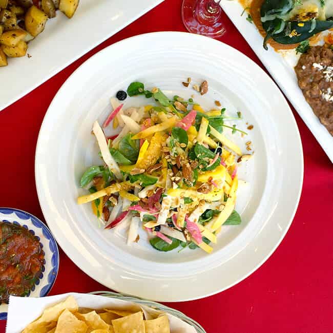 brunch at Tortilla Jo's was awesome. i love Mexican food, so this is my favorite kind of brunch. there was a little bit of everything to enjoy on the weekend brunch menu. my favorite was this fresh, vibrant Apple Spring Salad with mango, apples, watermelon radish, jicama, spinach, oatmeal and dried blueberries. it was perfectly dressed and seasoned. but this was just the beginning...