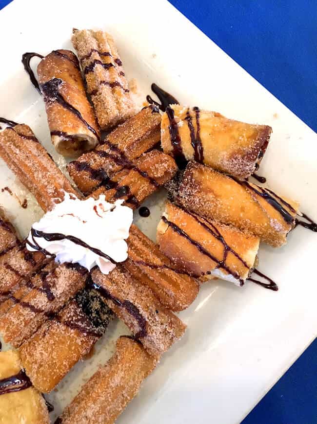 be sure to end your brunch with a sweet dessert. from churros en bolsa to deep fried ice cream to coconut flan to postre de manzana, you didn't have to ask me twice to have a little dessert to top of my lovely brunch.
