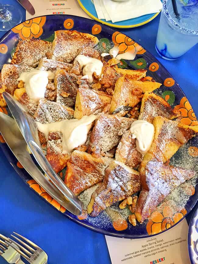 here are a few of the menu items that we enjoyed during our brunch. Huevos Rancheros – corn tortilla, refried beans, two sunny side up eggs, salsa ranchera, cotija cheese, served with papas a la Mexicana, Machaca con Huevos Chile Relleno – shredded beef and egg stuffed poblano chile, smoked tomato salsa, served with Mexican rice and refried beans, and ahhhhh! Cinnamon French Toast – brioche, cinnamon, candied walnuts, cajeta syrup, horchata whipped cream. soooooo good!
