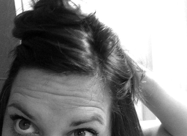 Step 2: i pin up the top half of my hair on top of my head with a clip or hair tie.