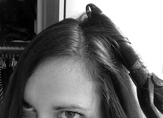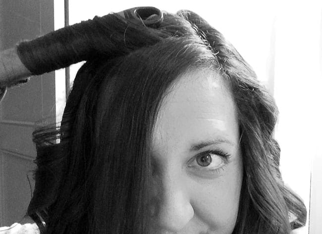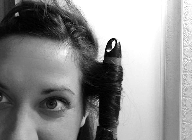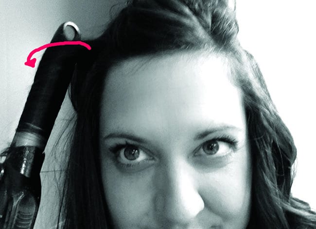 Step 8: i like to start on the smaller side of the part and curl those pieces (just like i did the others), also making sure to curl the pieces towards the back, curling away from my face.
