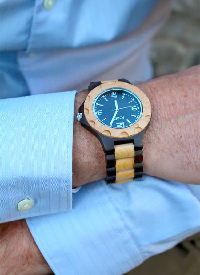 One of the best gifts that we have gotten our dad…my husband for Father’s Day, was this JORD Wood Watch. we gave him it as his gift last year and he wears it all the time. it perfectly defines our lifestyle living here in Orange County. He loves that is is made from wood and has that rustic feel, yet it still has the look of luxury. If I had to pick a watch that deskills my husband, it would be a JORD wood watch.