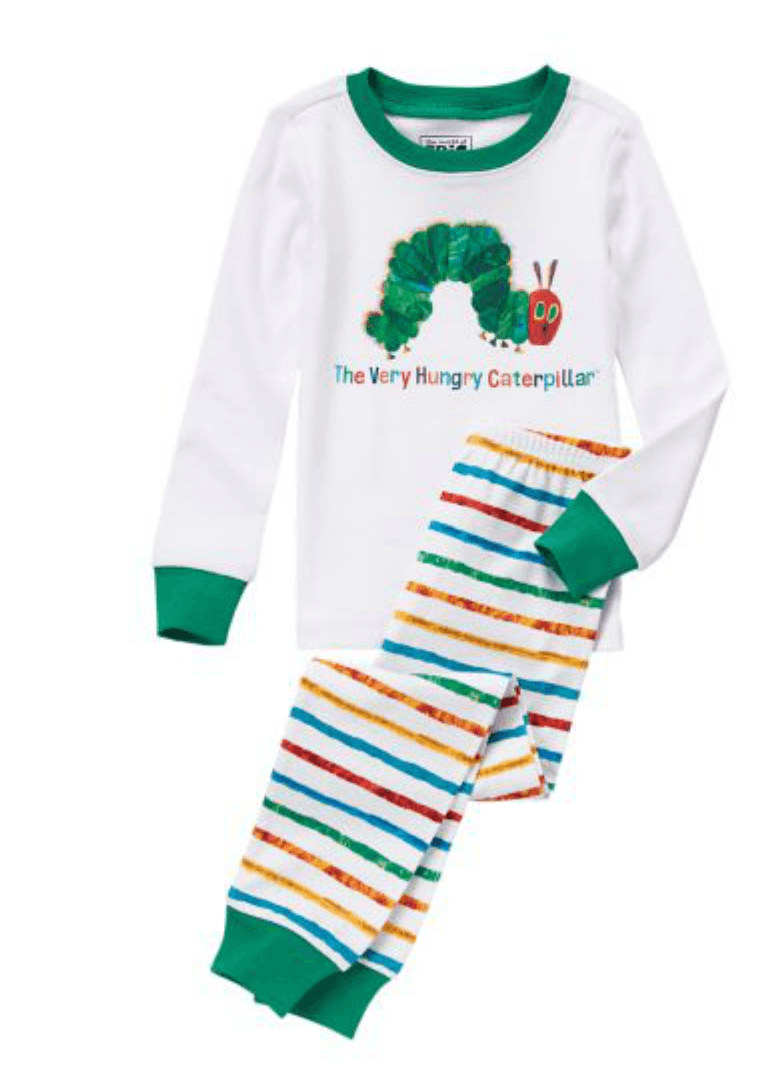 my boys and i love the Eric Carle books...especially the artwork which is unique and colorful. i have been reading his stories to my children since they were babies. "The Very Hungry Caterpillar," "Brown Bear, Brown Bear" and "The Grumpy Lady Bug" are all favorites of ours and are frequent choices for bedtime stories. that's why i was so excited to hear about the new Eric Carle Clothing collection at Gymboree. this new collection of sleepwear and play shirts at Gymboree features the colorful World of Eric Carle® artwork on them.