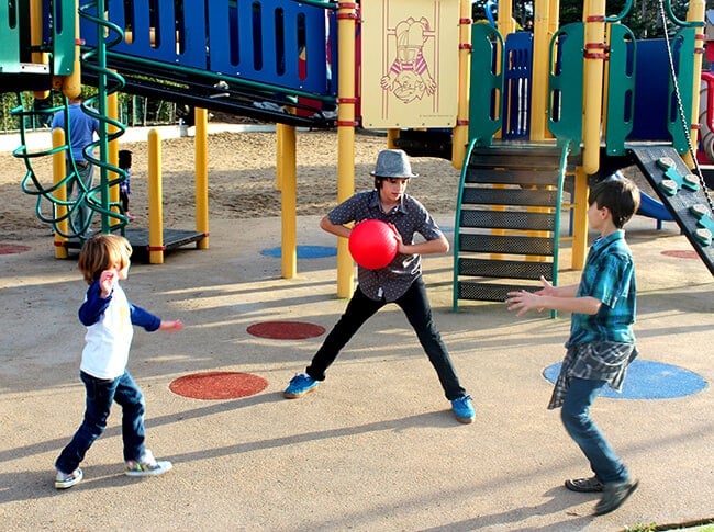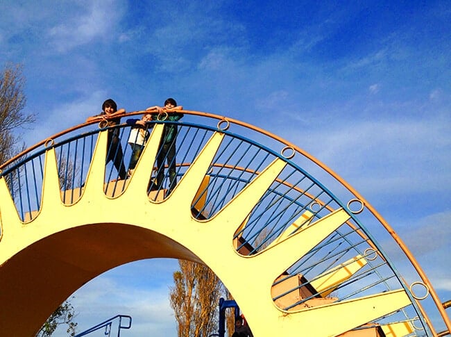the boys played and played. with the balls, on the swings, on the jungle gyms, in and out the tunnels and though out the entire playground. being able to explore a park with so much history was a real treat. not only is the Dennis the Menace Playground a wonderful place to play,