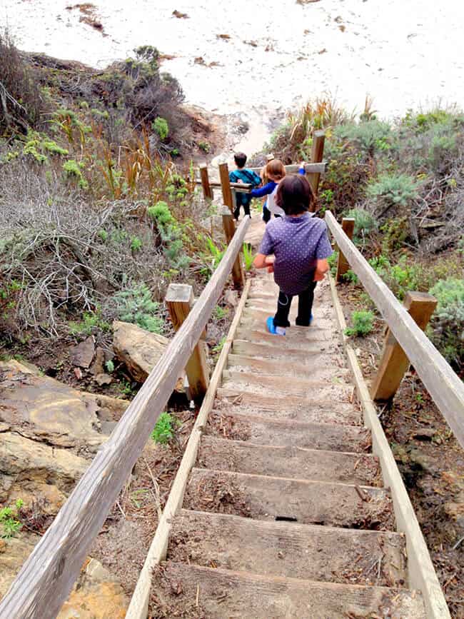 it was a bit of a hike down the steep staircase, but the beach was quiet and calm, and a fun place for the boys to run and play on. since the water seemed a bit rough, so we did not enter the oceans around Point Lobos Reserve.