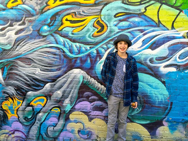 there are also some beautiful colorful murals painted on buildings along the way.