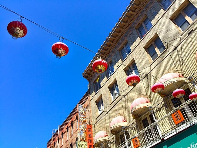 once you are at Dragon's Gate, you can walk north towards the Golden Gate Fortune Cookie Factory which is a few blocks up. the street is strewn with red and gold lanterns and building decorated in gold and dragons.