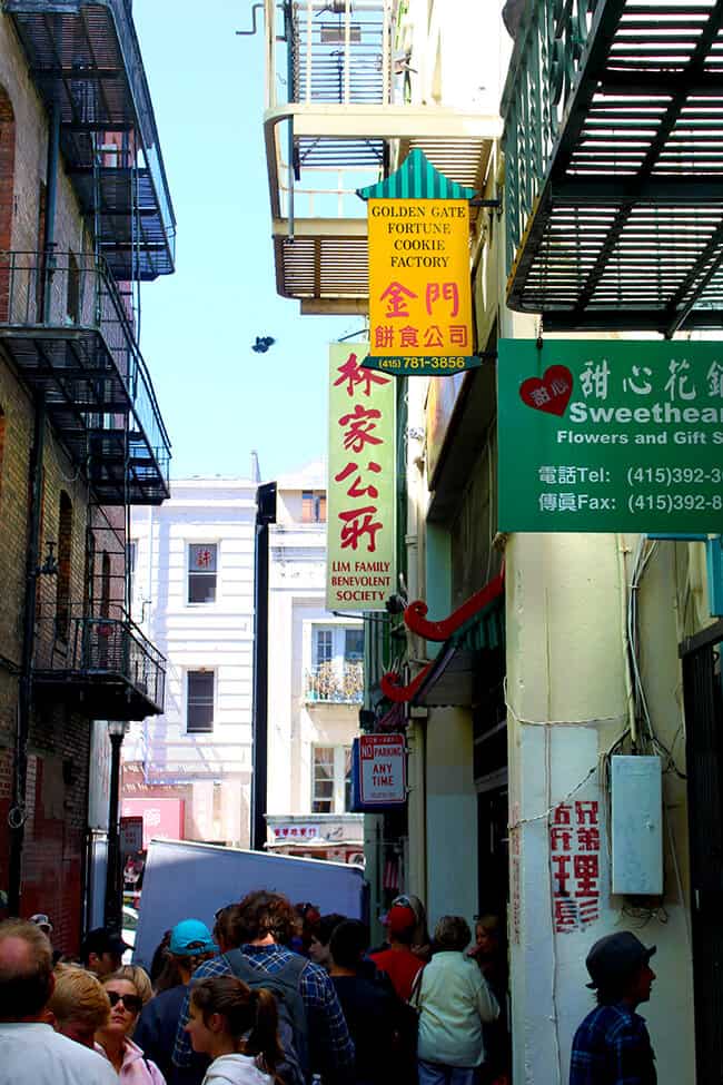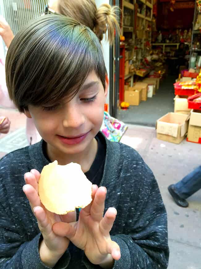 last summer we took a road trip up the coast of California and stopped in San Francisco, one of my favorite cities in California. there are so many things to enjoy in San Francisco, from the Wharf, to the museums, to the food, to the architecture. there are also many streets or sections of San Fran that are influenced by different cultures – each one lined with stores, restaurants and architecture reflecting it. Chinatown happens to be one of our family's favorite areas to explore. it is the largest China Town outside of Asia, and there are lots of unique things to see that are different from what we experience at home in our daily lives. we love all of China Town, but the boys most favorite part is visiting the Golden Gate Fortune Cookie Factory – which you can probably guess...is a real life fortune cookie factory.