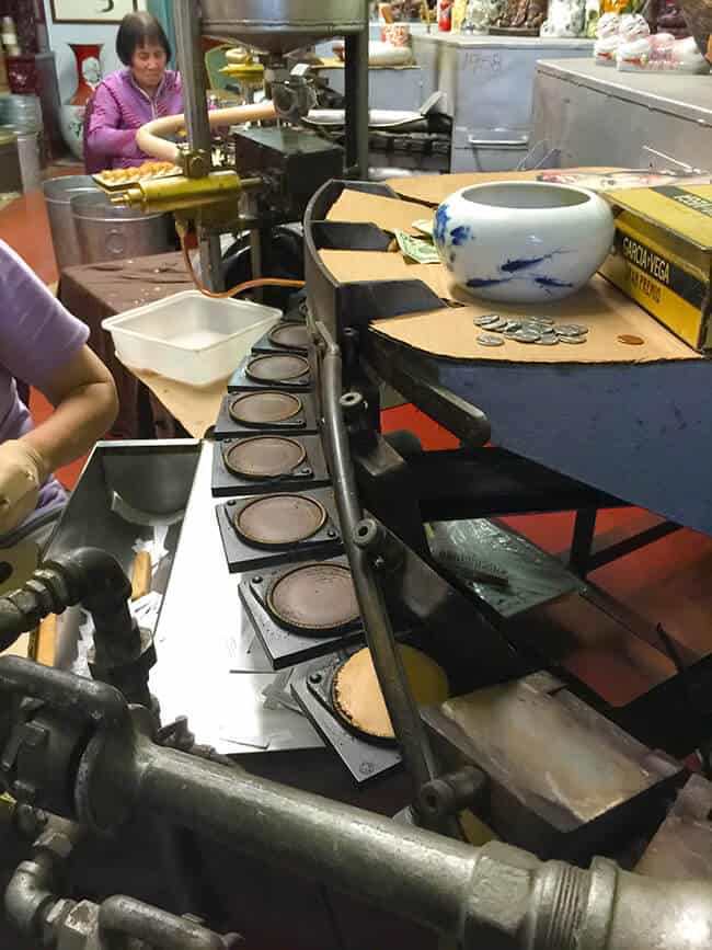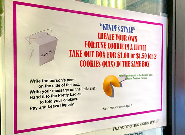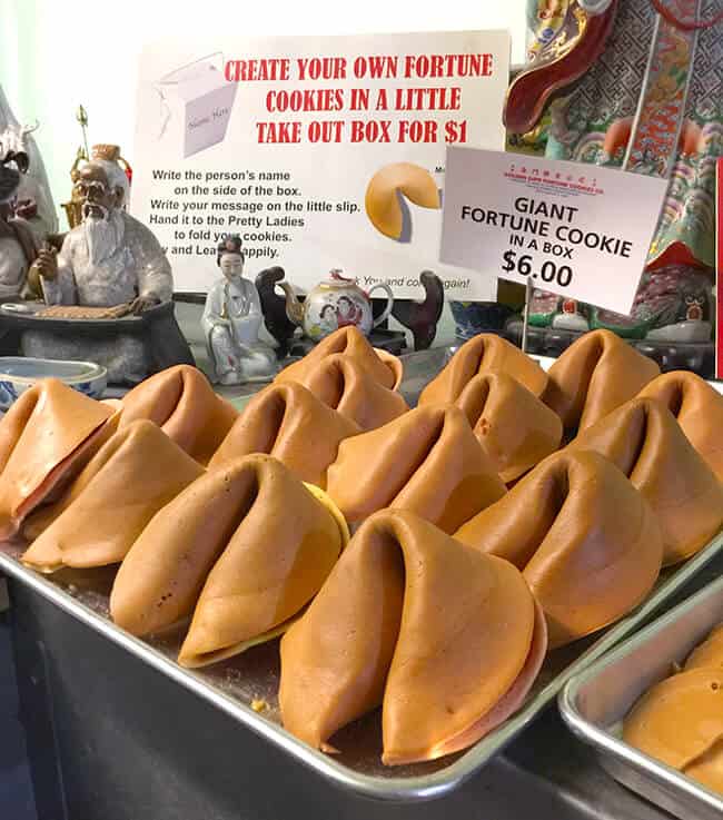 once you get inside the entrance, you will see fortune cookies being made right in front of you. the sweet smell of baking fortune cookies is incredible. and they give you lots of samples to taste.